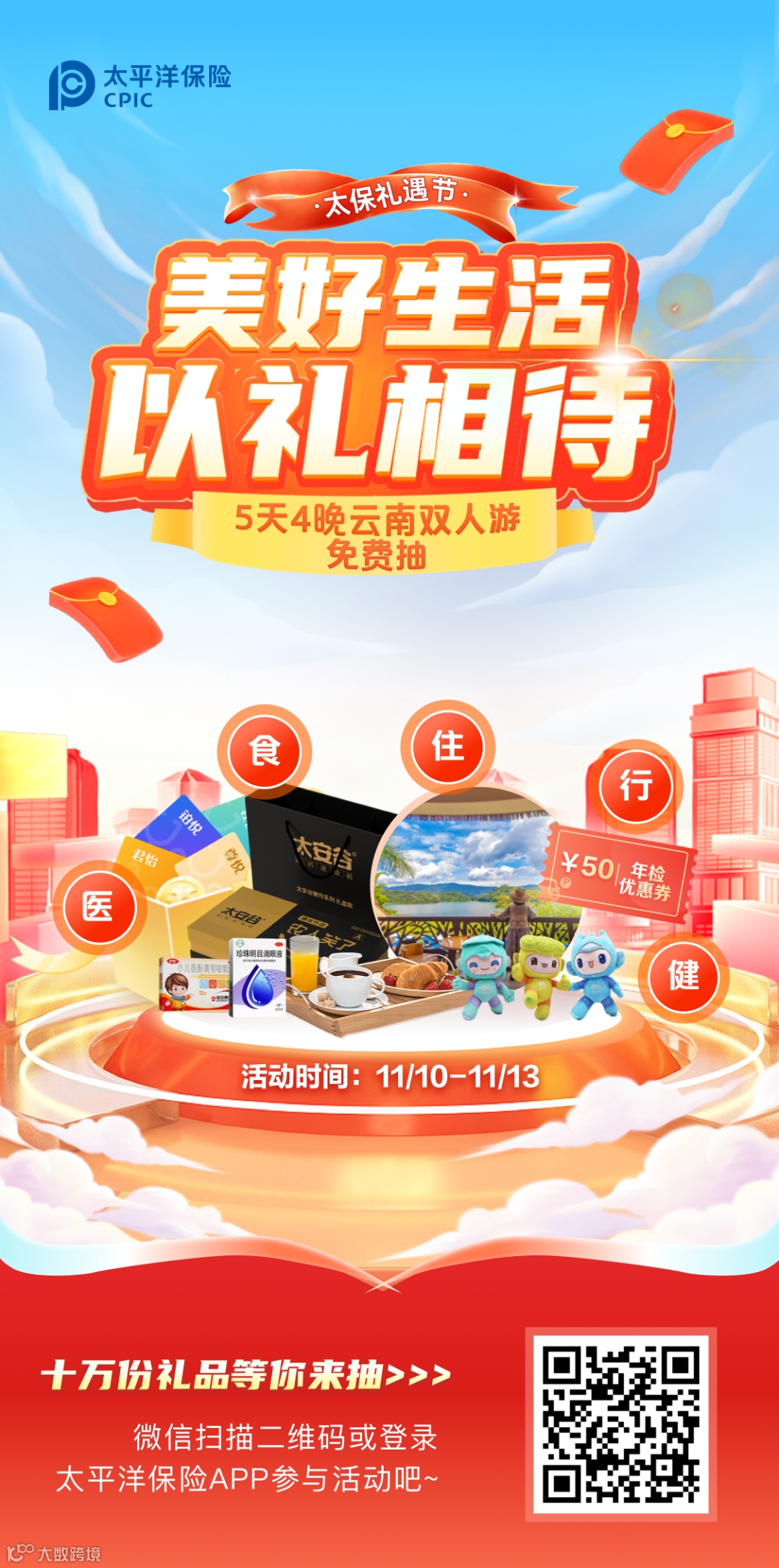扫描下方海报二维码或登录太平洋保险APP参与活动,抽取太保为您准备的多重好礼吧!