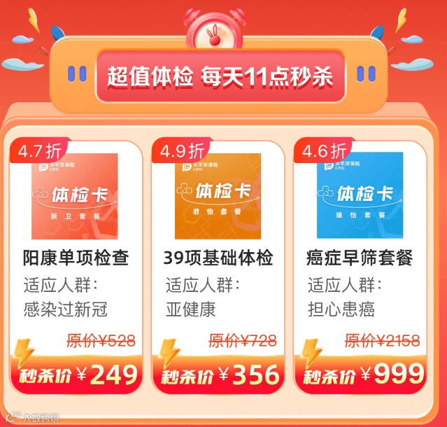 每天11点定时秒杀体检套装,跌破5折的价格,真香啊~