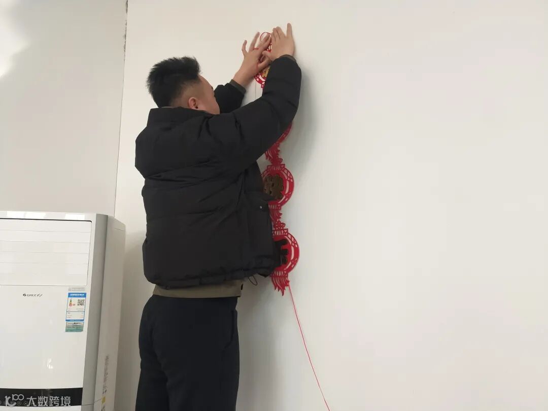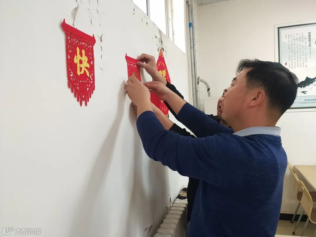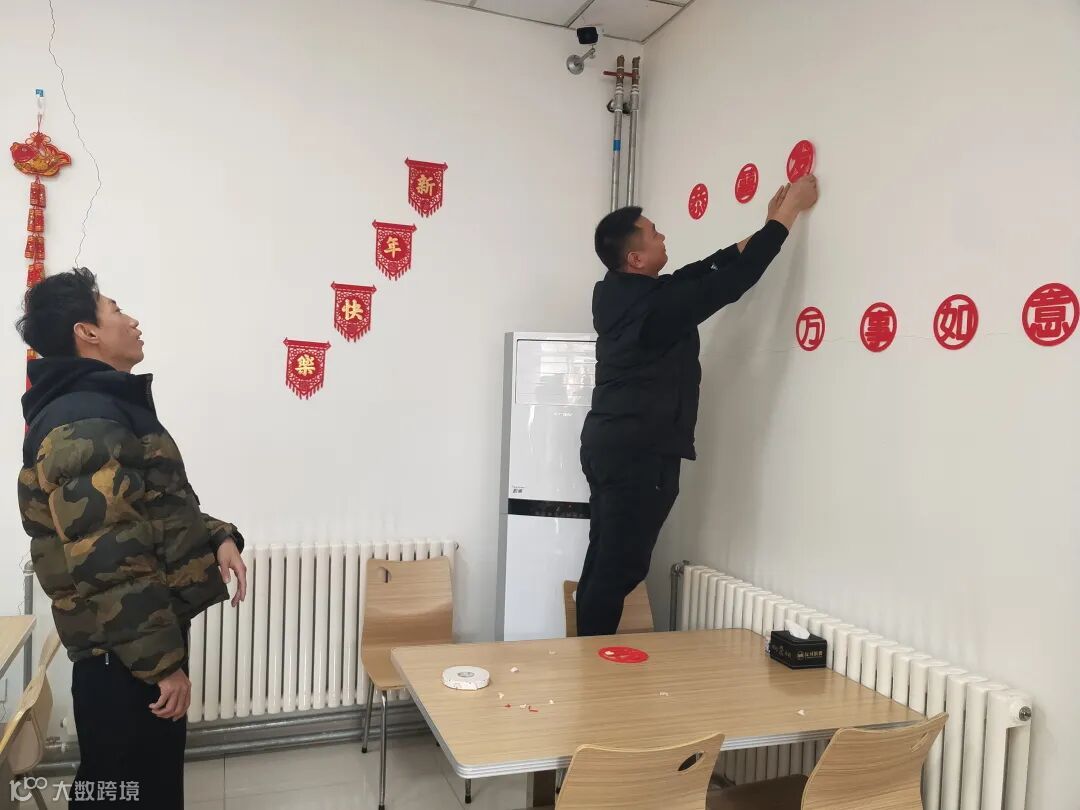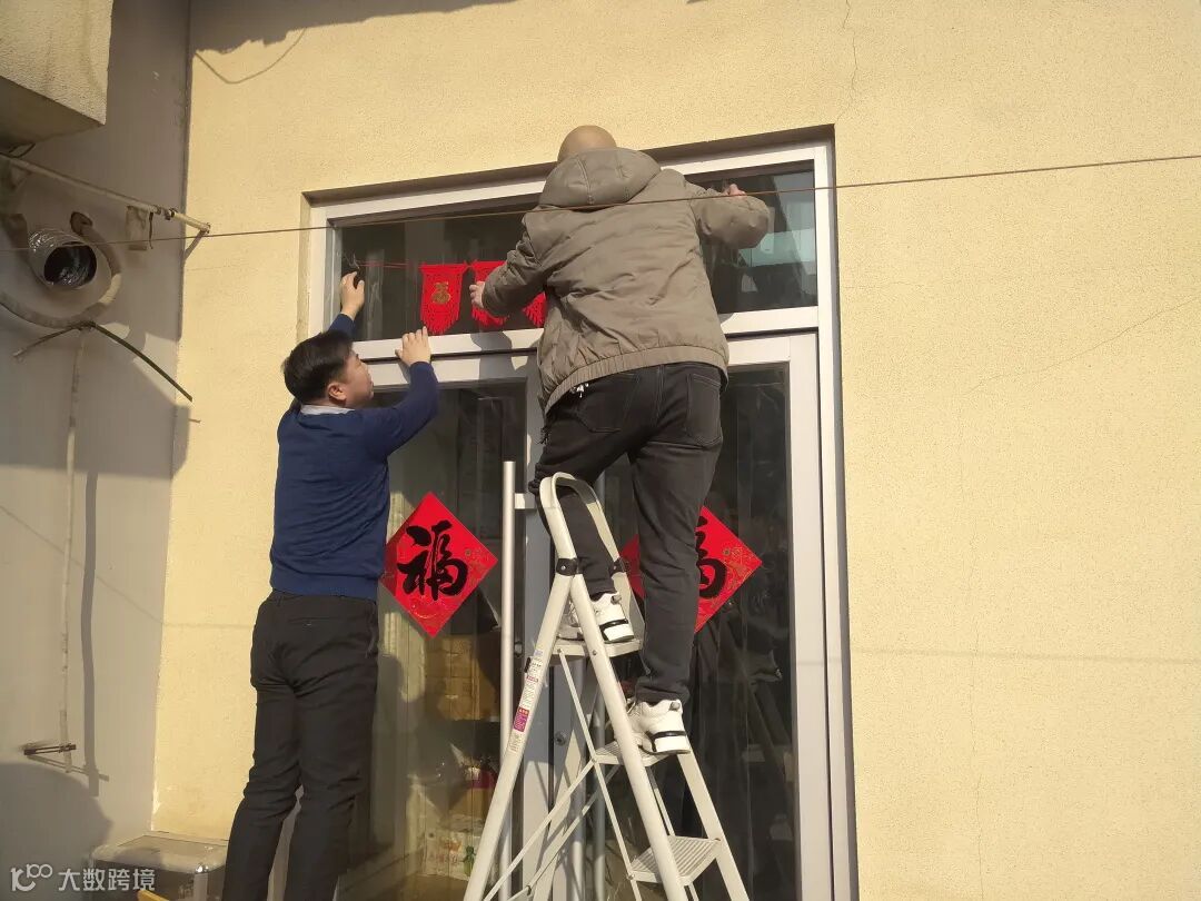 为了营造新年新气象的氛围,大家还张贴了春联和“福”字,呈现一幅喜气洋洋的画面,使年味越来越浓。