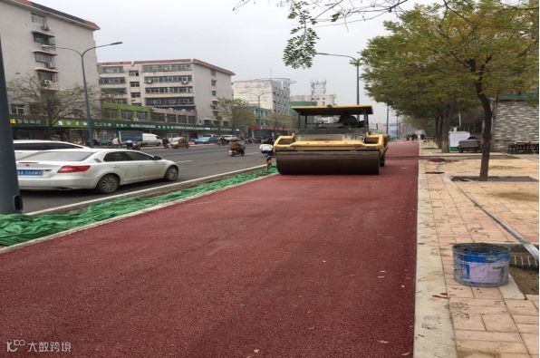 慢车道彩色沥青摊铺