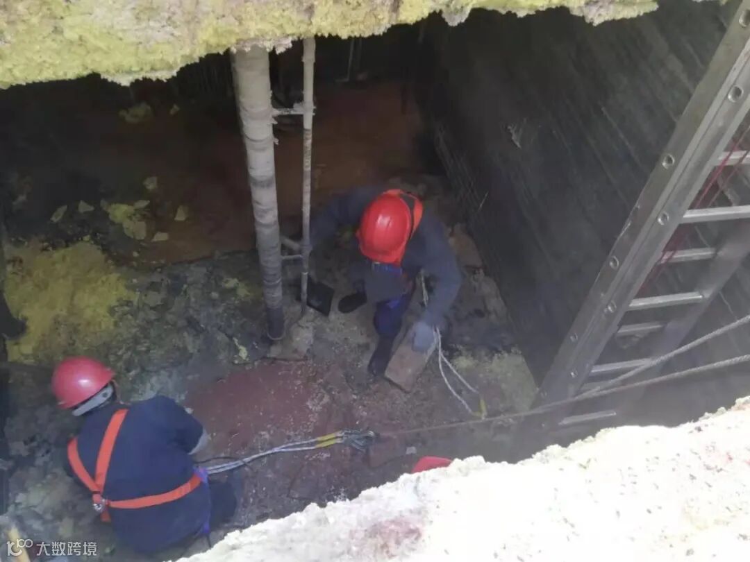 4月19日13时30分,北天集团东部劳务公司综合二队在二厂硫酸车间进行清理液酸池作业。在保证安全的条件下,工人们下到深达5米的坑内进行清淤作业。他们不怕脏和累,加班加点大干,确保清淤作业安全优质完成。【梁贵辉 杨成海】