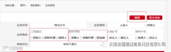 进入后选择编辑,勾选自己对应的角色:招标或者投标,可以多选。