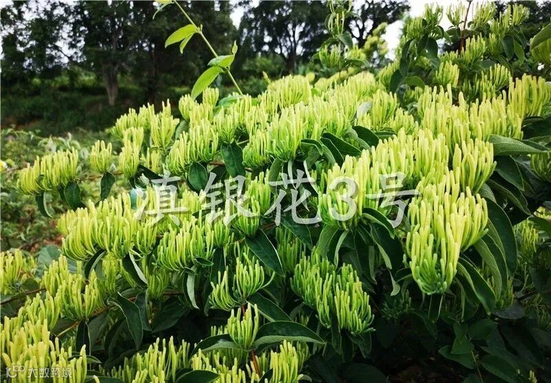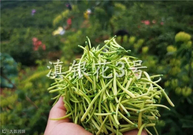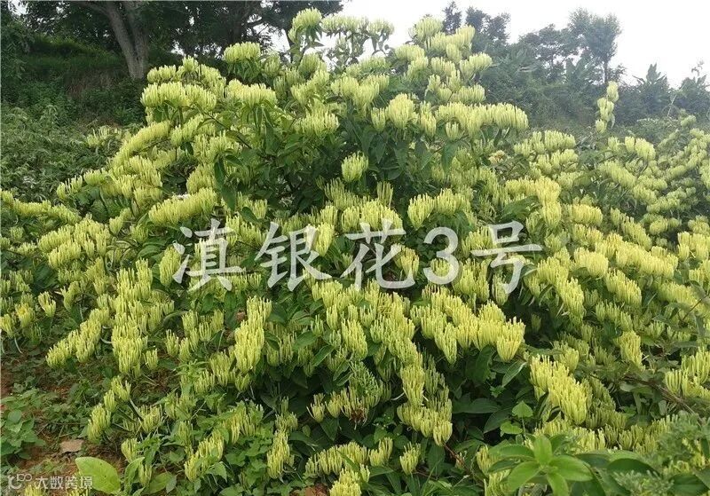 “滇银花3号”山银花产量高,集中开花,一次采收,病虫害相对较轻,一般亩产可达150kg以上,采收成本低,亩产值较高,与农作物比较效益好。近年“滇银花3号”山银花销售价格在80-120元/kg。