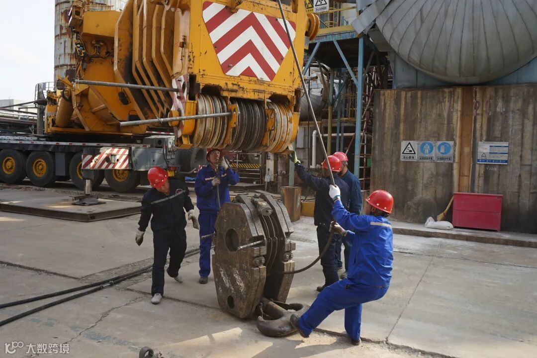 混合器稳稳降落至地面,检修人员用“工建速度”圆满完成了拆卸吊装任务。