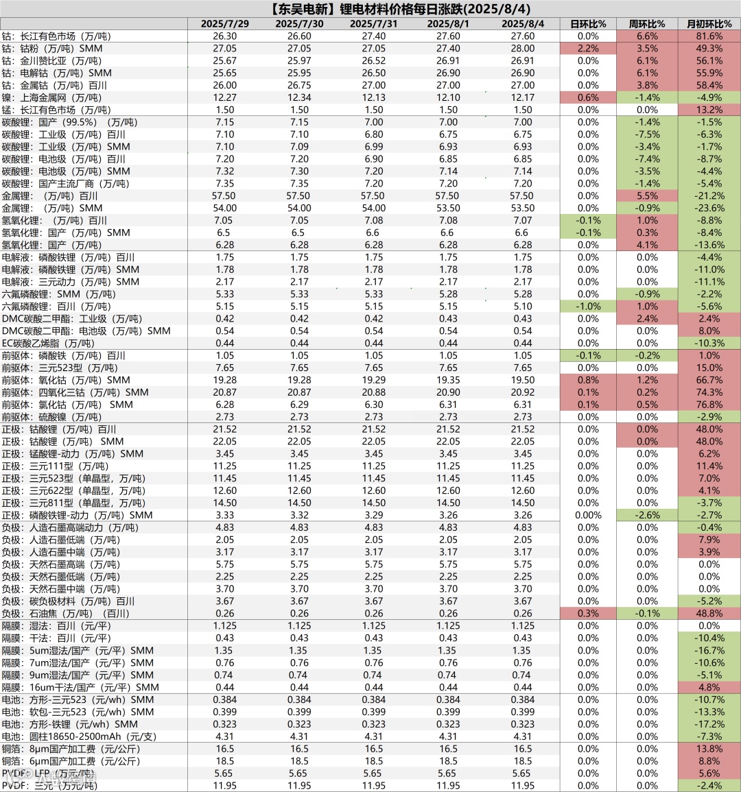 6、锂电材料价格