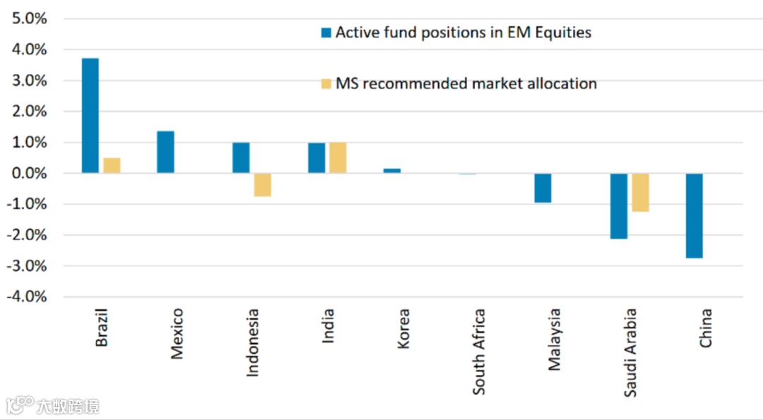 主动型基金对中国股票的低配程度,是所有主要新兴市场中偏离最大的。