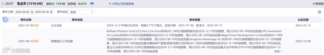 毛戈平:6月10号,解禁7.5%;