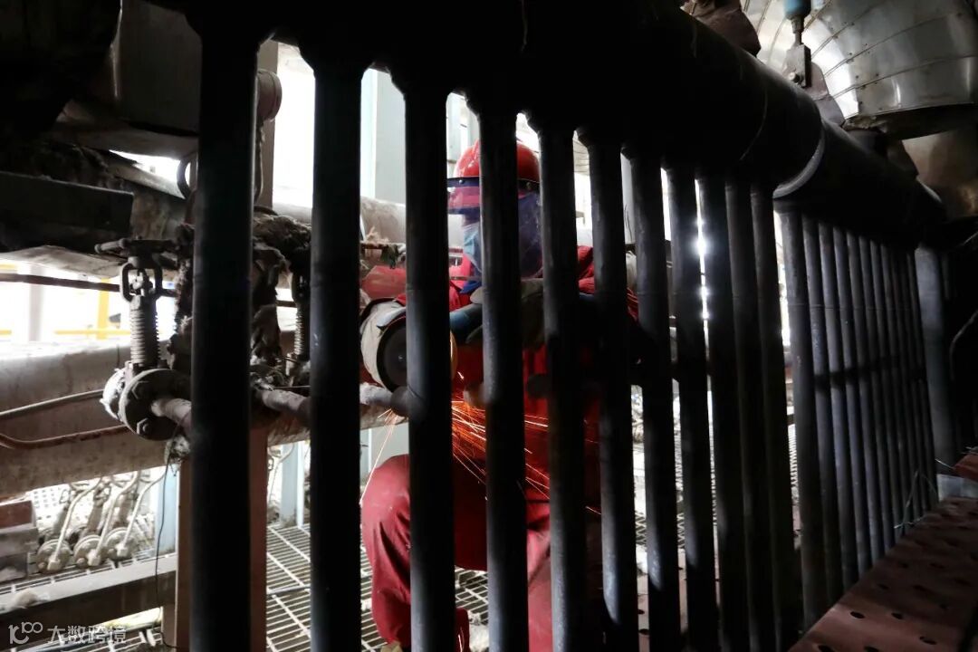 检修中需要进行脚手架搭设、弹簧吊架安拆限位、拆安炉顶遮蔽板、切焊炉管等等一系列工作。炉管更换时需用卷扬机将10多米长的炉管吊起,顺进炉内并垂直吊挂调整,组对焊接,对安全、质量、管理的要求非常高。