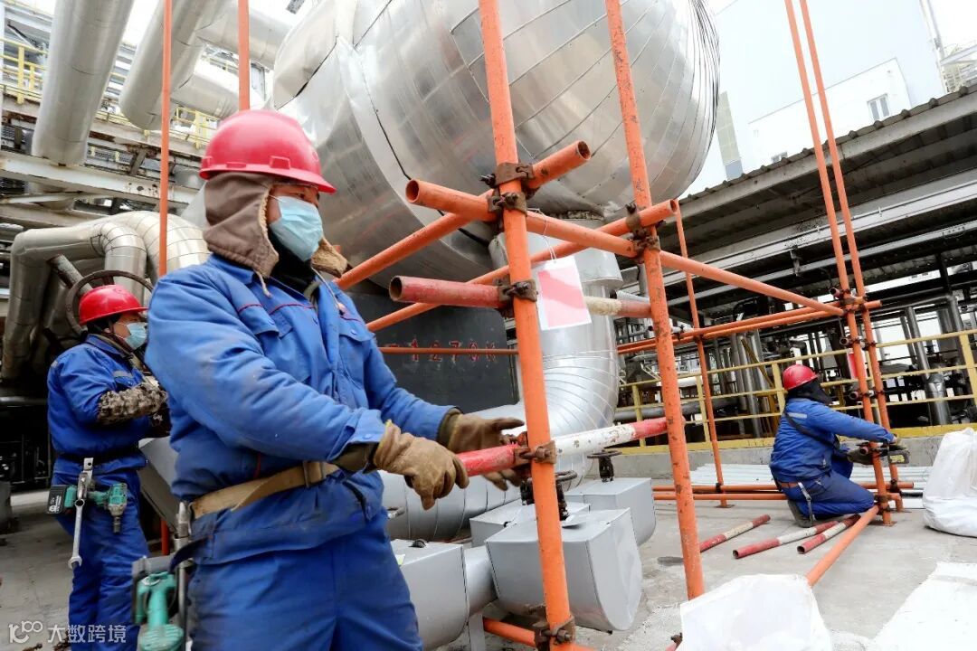 3月3日,初春的天气乍暖还寒。烯烃厂80万吨/年乙烯装置在阳光的照射下,泛着耀眼的光芒,远远望去,装置20区1270换热器被编织的脚手架包裹起来。湛蓝的天空下,红色的脚手架、银色的换热器分外醒目。
