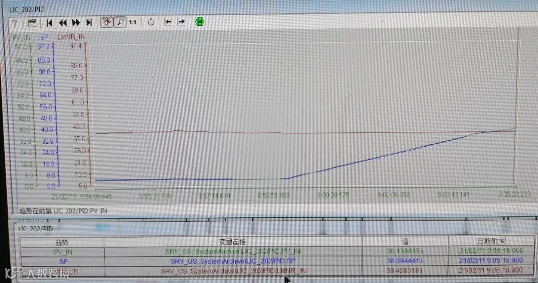 大年三十上午九时,当所有沉浸在浓郁的年味之时,乙烯车间压缩内操刘梓监盘时,大喊一句“班长,快看,裂解气压缩机二段吸入罐液位呈急速上涨趋势,操作画面上液位显示出现黑表情况,阀位显示始终停留在39.4%”,控制面板出现红色扳手图案瞬间在控制室内在场的所有人都绷紧了弦。