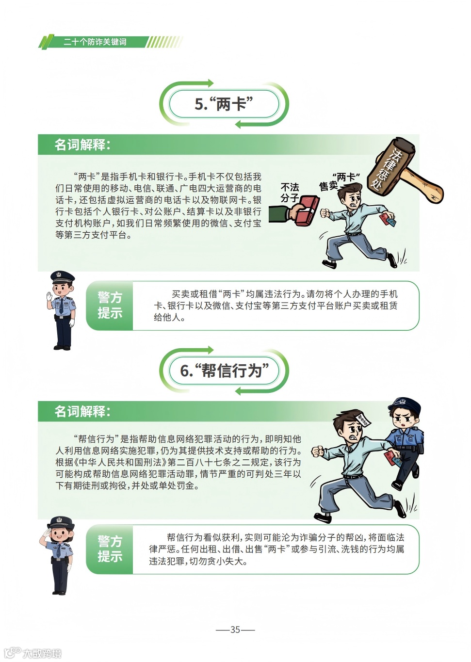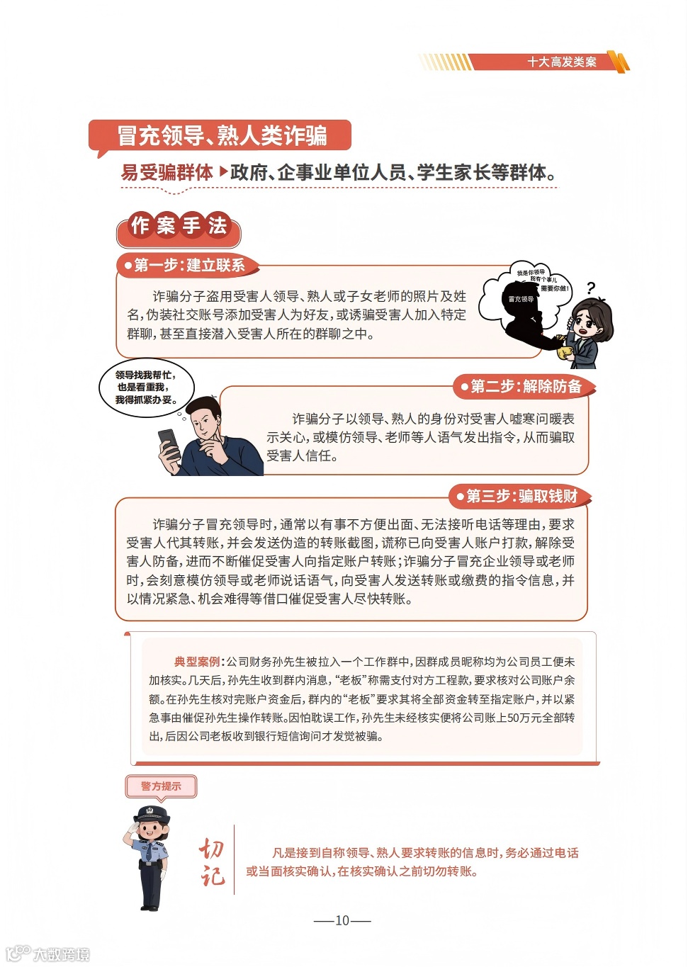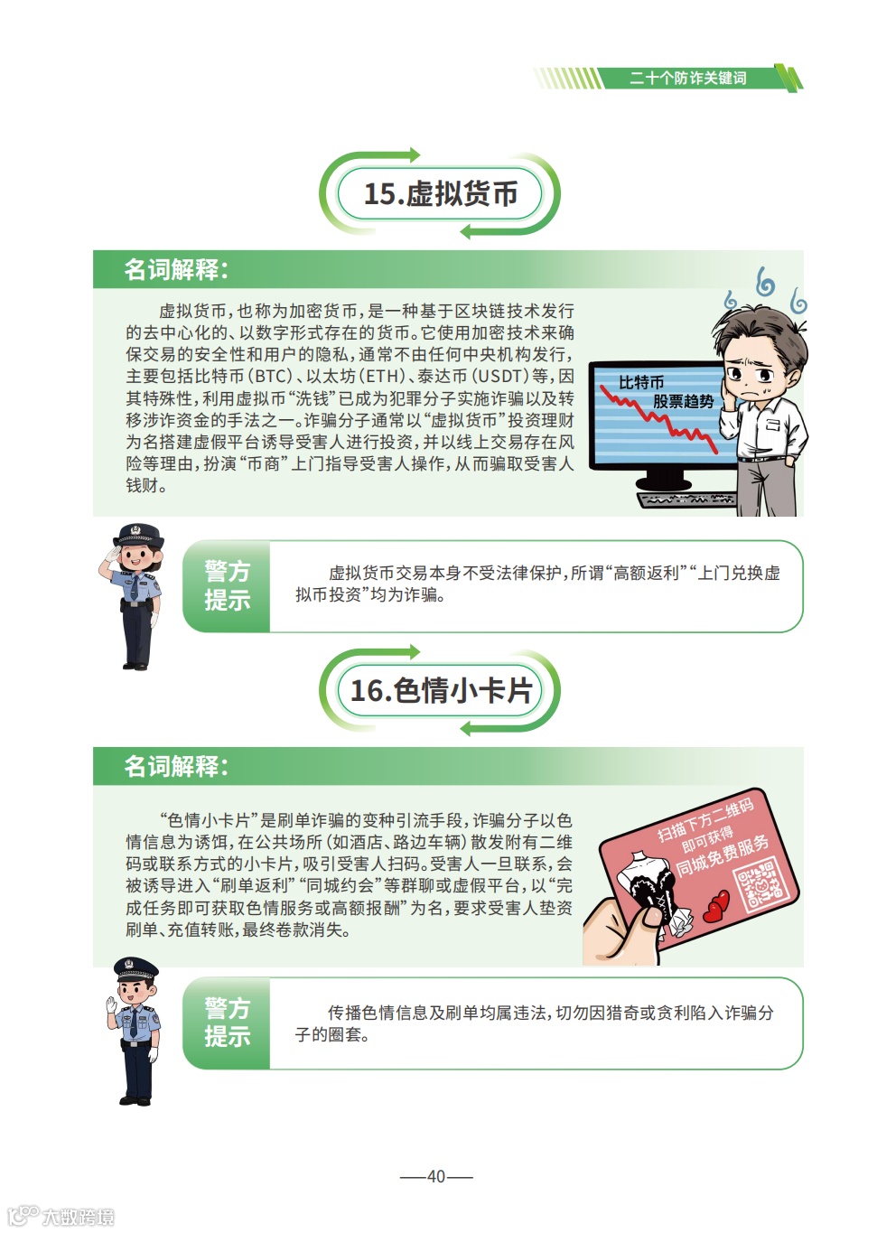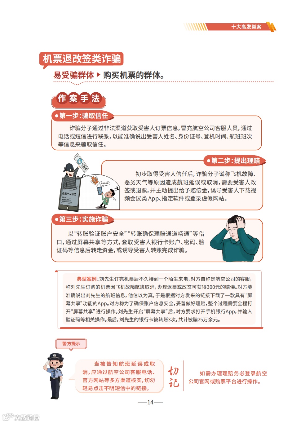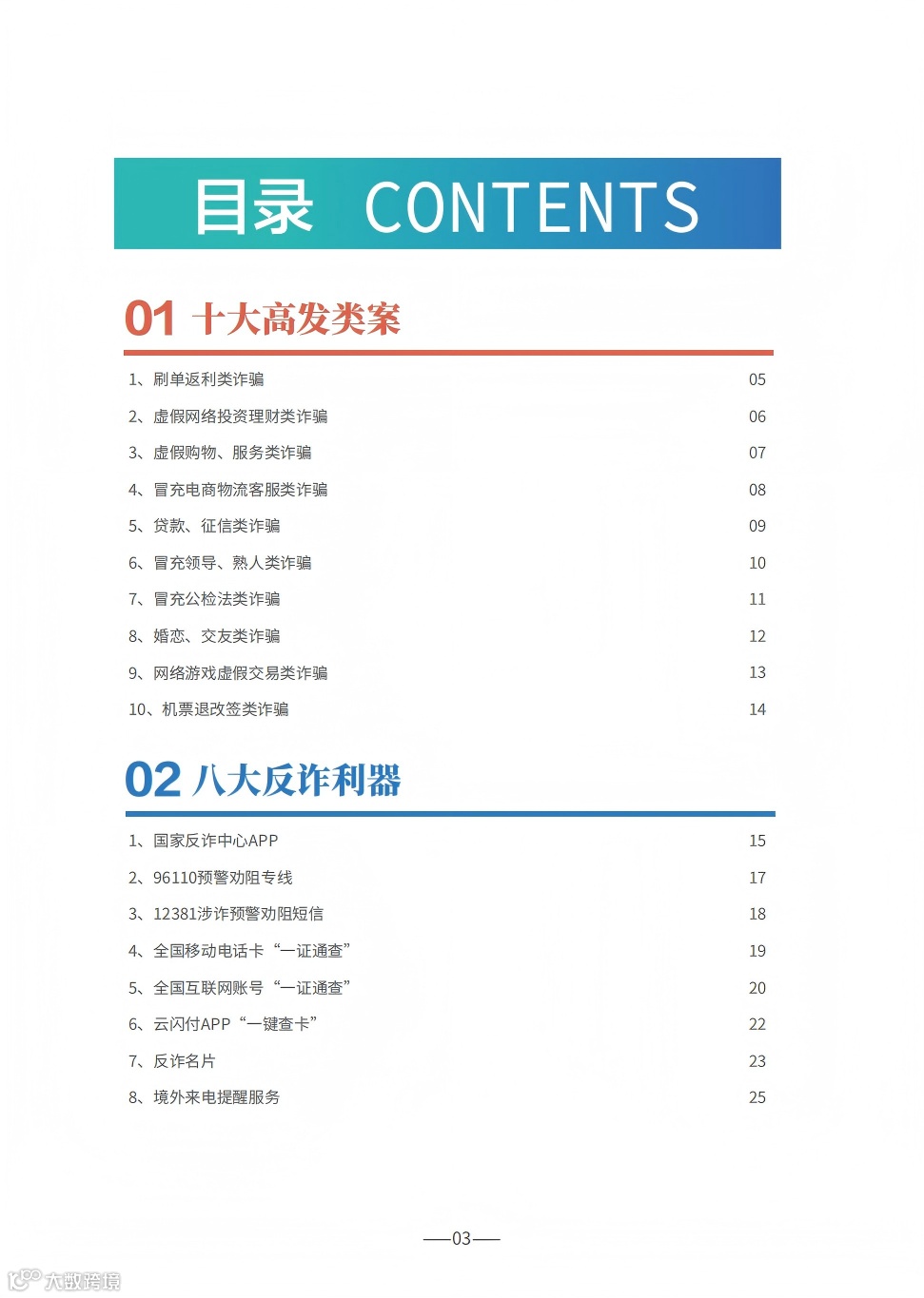 《手册》详细梳理了刷单返利、虚假网络投资理财、虚假购物服务、冒充电商物流客服、贷款征信、冒充领导熟人、冒充公检法、婚恋交友、网络游戏产品虚假交易、机票退改签等10类高发的电信网络诈骗类型,通过典型案例剖析,逐个解析诈骗套路,揭批作案手法,为易受骗群体“量身定制”反诈防骗提示。同时,《手册》详细介绍了前期公安部会同工信部、中国人民银行推出的七大反诈利器——国家反诈中心APP、96110预警劝阻专线、12381涉诈预警劝阻短信系统、全国移动电话卡“一证通查”、全国互联网账号“一证通查”、反诈名片、云闪付APP“一键查卡”,以及今年工信部推出的第八个反诈利器——跨境提醒服务,帮助群众有效甄别境外来电。此外,《手册》首次总结提炼了帮助群众快速破译骗局的20个防诈关键词,切实构筑拦截电信网络诈骗的“防火墙”。