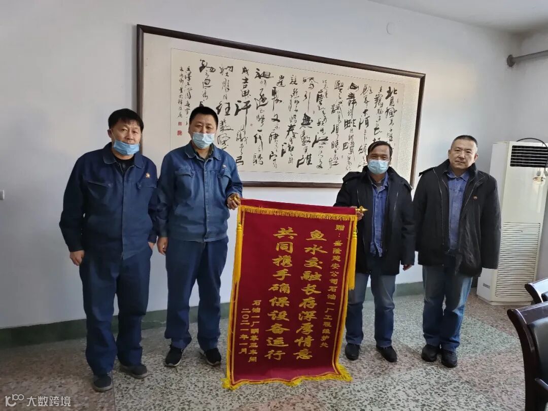 1月7日下午,北天集团建安公司收到了一份“新年礼物”:一面绣有“鱼水交融长存深厚情谊 共同携手确保设备运行”的锦旗。来送“礼”的是石油一厂酮苯三车间主任张永君和生产主任白鹏。
