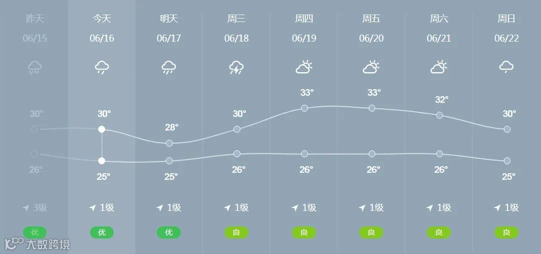 预计我市16到18日受西南季风影响,有中到大雨;展望19到20日多云,有阵雨或雷阵雨。请注意防范局地短时强降水、雷雨大风等强对流天气;台风“蝴蝶”将于本周末给我市带来明显降雨过程,请注意防范。