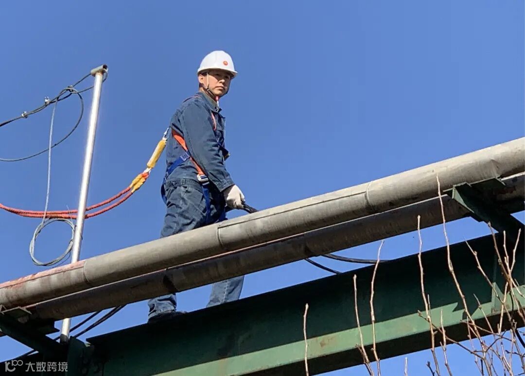 由于无作业走台,2名电工人员只能跨坐在桥架两侧牵引电缆,龙门架下直角拐点处各设1人,上下通力配合,动作整齐划一,确保电缆顺利穿越龙门架。