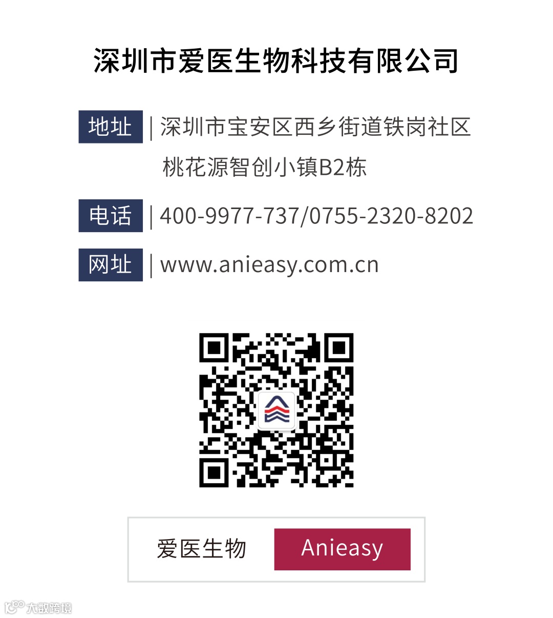 深圳市爱医生物科技有限公司 (以下简称爱医生物) ,是中国A股创业板上市公司深圳市易瑞生物技术股份有限公司 (股票代码:300942) 全资子公司。专业从事牛羊反刍动物、猪、禽及宠物等动物健康领域,以“关爱动物,用创新引领健康”为使命,为用户提供全球领先的动物健康系列产品、服务及整体解决方案;是一家集研发、生产、销售、服务及信息化建设于一体的生物高科技企业。