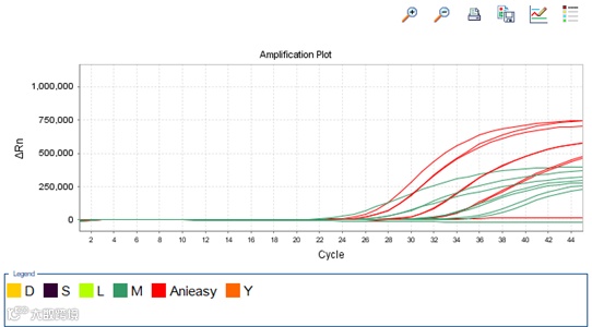 (4)与S公司对比:与S公司产品对比,各浓度样本荧光值差异不大,但CT值略优于S公司产品。