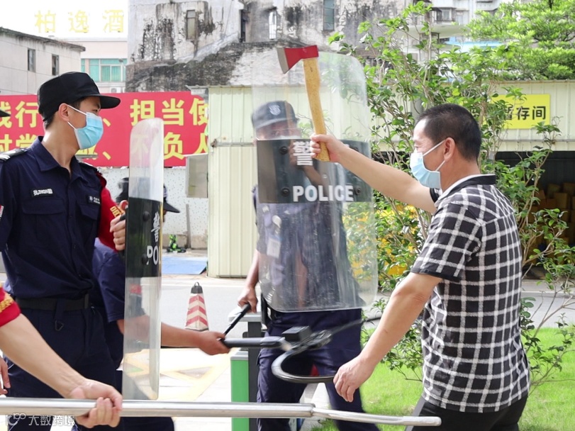 我司驻江门市中心医院安保团队负责人谭贤开自接到通知,便立刻组织人员开展演练培训,讲解注意要点,进行演习实战。