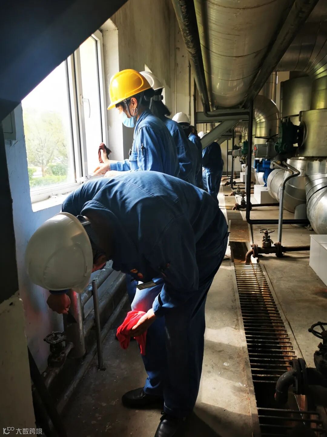 “强将手下无弱兵”,机动部部长、技术发展部部长、管网车间主任、管网车间党支部书记身先士卒、率先垂范,擦玻璃、去油污、清地面,充分展示了他们团结拼搏、紧密配合的“石榴籽”精神。