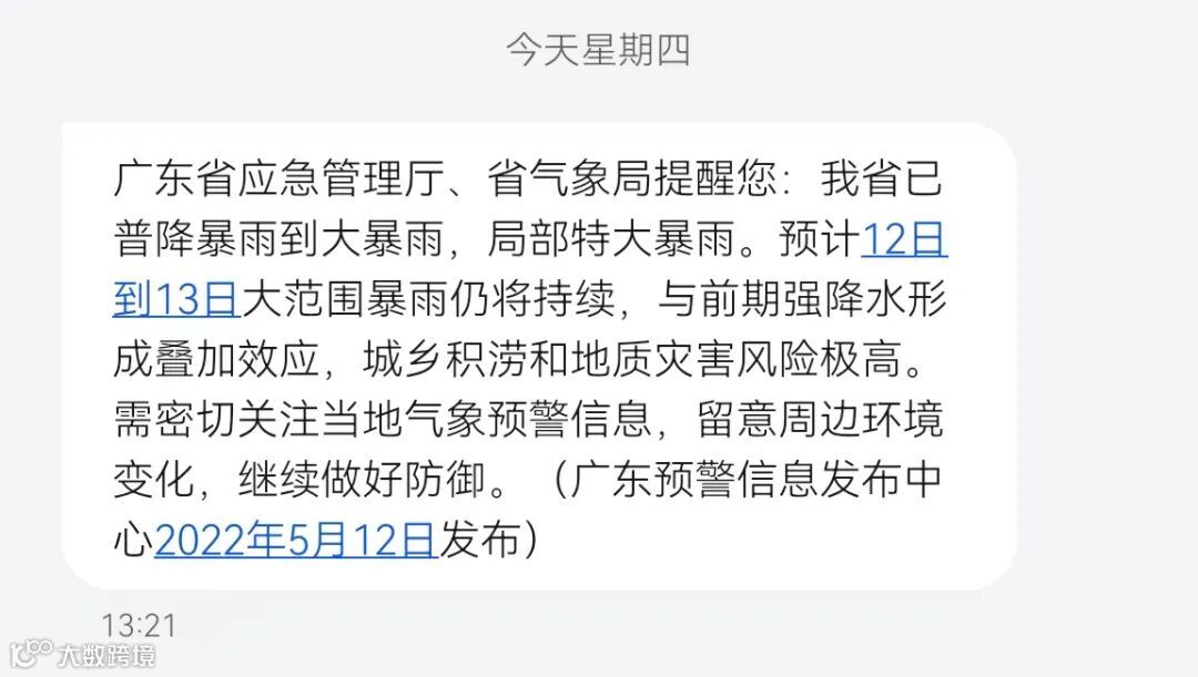 广东预报信息发布中心多次短信提醒各区、各单位必须防御持续性降水导致的积涝和地质灾害风险。