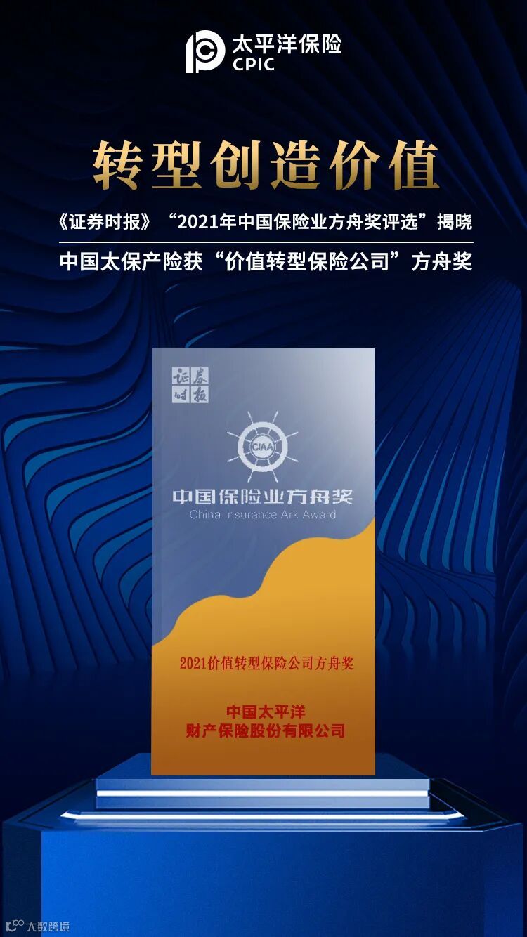 2021年10月29日,由人民日报、证券时报主办的第六届 “2021中国保险业方舟奖” 评选结果揭晓,经过材料甄别筛选、专家评审委员会打分及网络票选等三轮激烈角逐,中国太保产险在本次方舟奖评选中凭借品质过硬、增长有力的高质量转型,蝉联 “2021价值转型保险公司方舟奖” 。