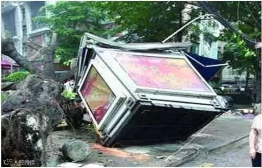 “台风刮倒广告牌砸坏车”已是屡见不鲜,所以不能心存侥幸将车停在迎风的广告牌旁边哦!由于广告牌面积比较大,受风力影响大,如果被刮倒,停在旁边的车很难幸免于难。