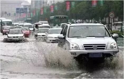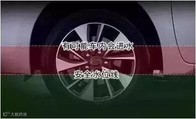 水深已过行人膝,建议汽车不要通过,避免发生“水淹车”事故。水深过钢圈一半(到达上图红色部分),建议不要继续行驶,以免发动机进水。