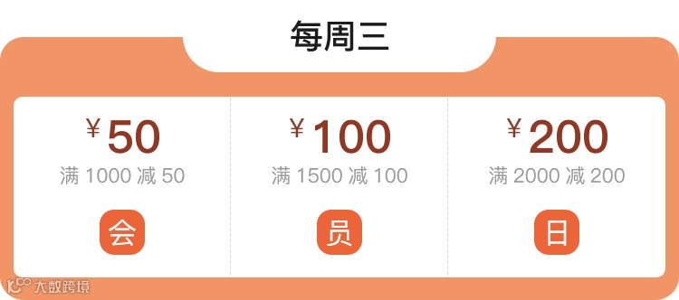 门店全场满1000元减50元,满1500元减100元,满2000元减200元。