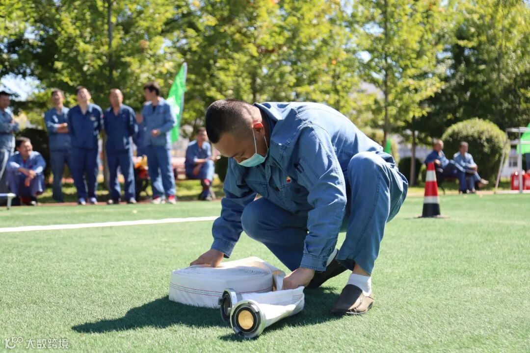 在25米长的赛道上完成消防水带连接的规定动作,使用后并将水带回收。熟练掌握此项技能,为扑救初期火灾提供重要保障,娴熟的技能掌声、叫好声响彻整个比赛现场,全场沸腾。