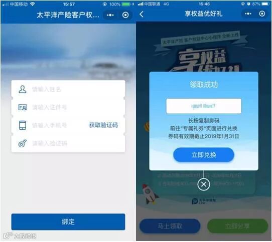 只要通过客户权益中心小程序参加活动完成绑定,