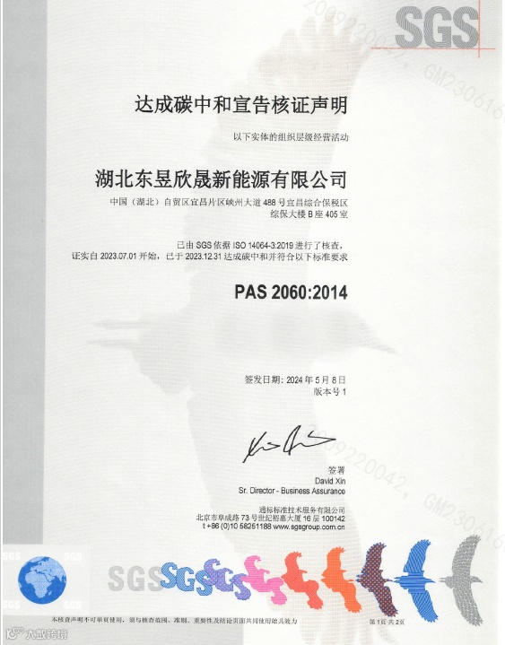 ▲ PAS 2060碳中和团队结合行业发展趋势,欣旺达动力近年来拓展新兴战略应用市场,积极布局商用车动力电池和工业、家用储能电池市场。同时,东昱欣晟依托宜昌地域优势,积极响应“电化长江”号召,快速开发、落地船舶动力电池解决方案,推进长江及附近流域船舶零碳转型。2024年一方面加大能源结构转型,搭建“光储充”一体化的分布式光伏绿色能源系统,对差异部分通过绿证和碳信用抵消;另一方面深度利用资源多次利用,构建”水蓄冷“集中供冷系统,最终实现园区100%绿电全覆盖和“零碳”目标。生态环境保护和经济发展是相辅相成的,可持续发展理念逐步成为全球实现经济稳定发展的共识。在注重企业自身高质量高速度发展的同时,欣旺达动力将继续贯彻落实可持续发展举措,践行企业社会责任,为中国减排降碳事业贡献自身力量。