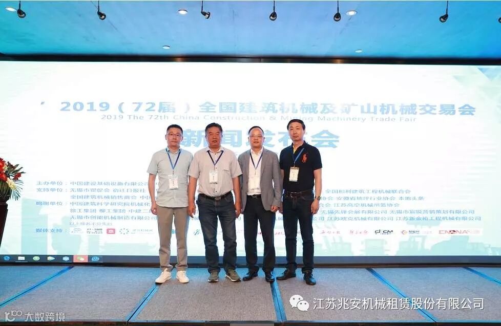 5月30日,2019(72届)全国建筑机械及矿山机械交易会新闻发布会在江苏无锡锡州花园酒店举行。本届交易会将定于2019年9月25-27日在无锡太湖国际博览中心举办,由中国建设基础设施有限公司、中国国际商会无锡商会主办,中华建设机械商会、徐工集团建机公司、柳工集团江苏建机公司支持,无锡先锋会展有限公司、无锡市宸锐营销策划有限公司、本地头条协办,无锡恒荣文化发展有限公司承办。