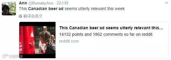 “这条加拿大啤酒广告诠释了爱和包容,是美国永远无法拥有的。”