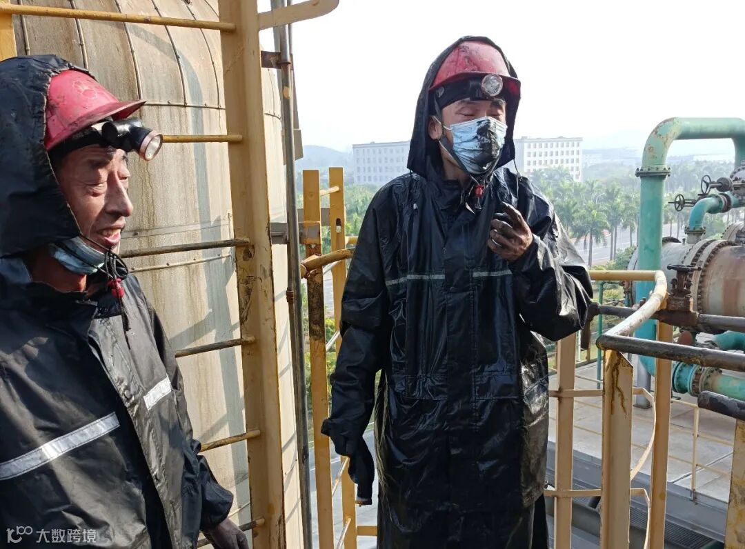 吸收塔内光线昏暗,作业环境十分窄小,满是又黑又黏的残留油污。由于蒸发时间较短,塔内残留了大量积水,上层塔盘的积水径直落到下层,犹如下雨一般,再加上塔盘上的螺丝腐蚀十分严重,拆卸难度巨大。施工人员每拆除一层塔盘都要付出巨大的体力,他们不仅要拆卸满是油污的塔盘,还要躲闪掉落的污水。