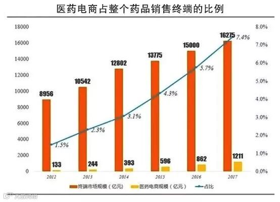 近年来“互联网+”概念辐射并渗透医药行业,医药电商得到蓬勃发展。然而中国医药零售在医药市场中的占比约为22.6%,且其中电商占整个药品销售终端的比例为7.4%,远远低于欧美市场。未来中国医药电商有很大的发展空间,但现阶段由于市场环境、政策监管壁垒以及消费者行为差异等因素,众多医药企业在探索电商的道路上将面临不少挑战。