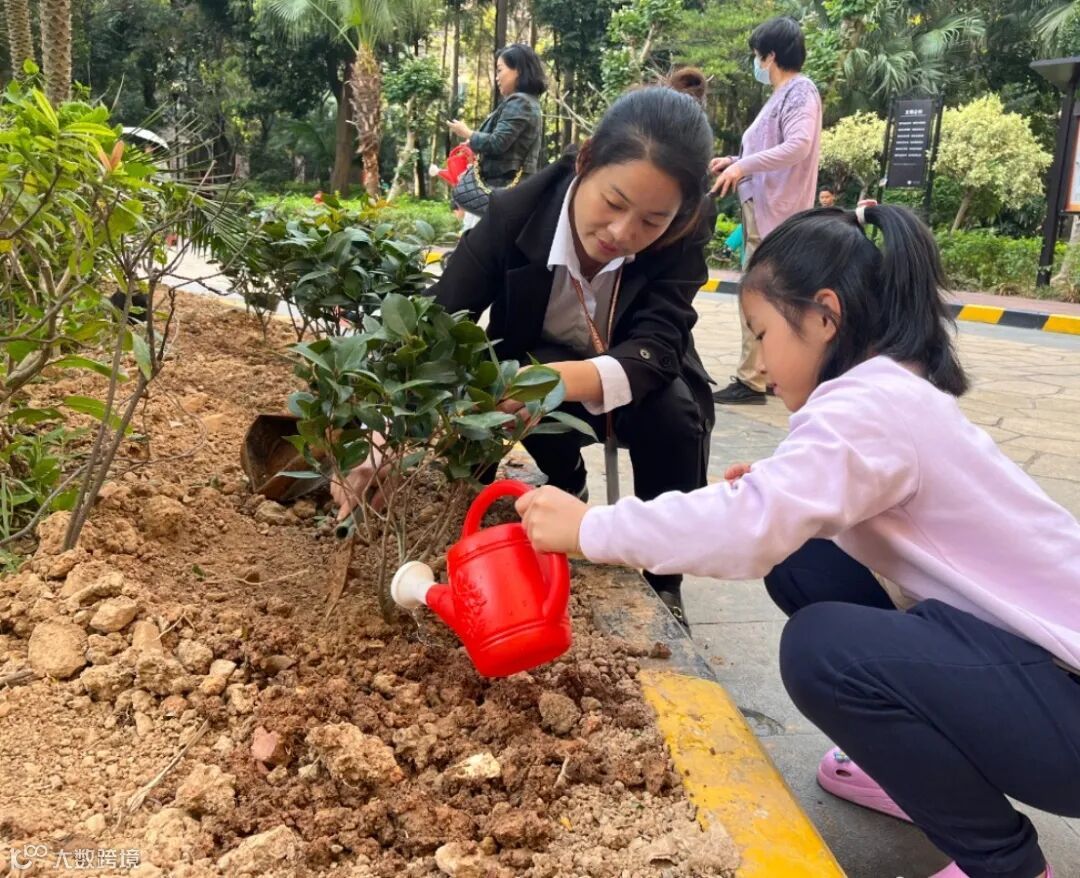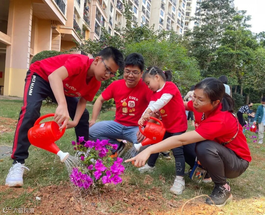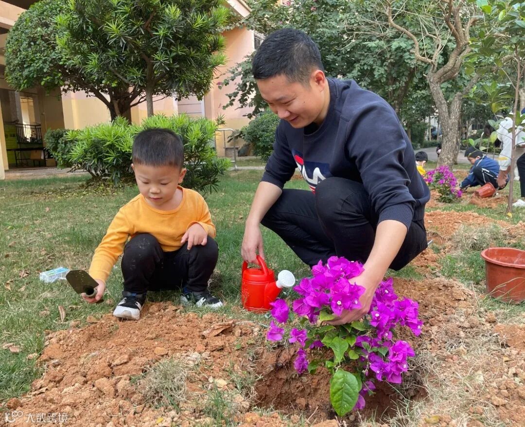 松土、放苗、回填、浇水,大小朋友们干劲十足,热情高涨,齐心协力在家门口种下一棵棵绿植,为美好家园增添一抹新绿。