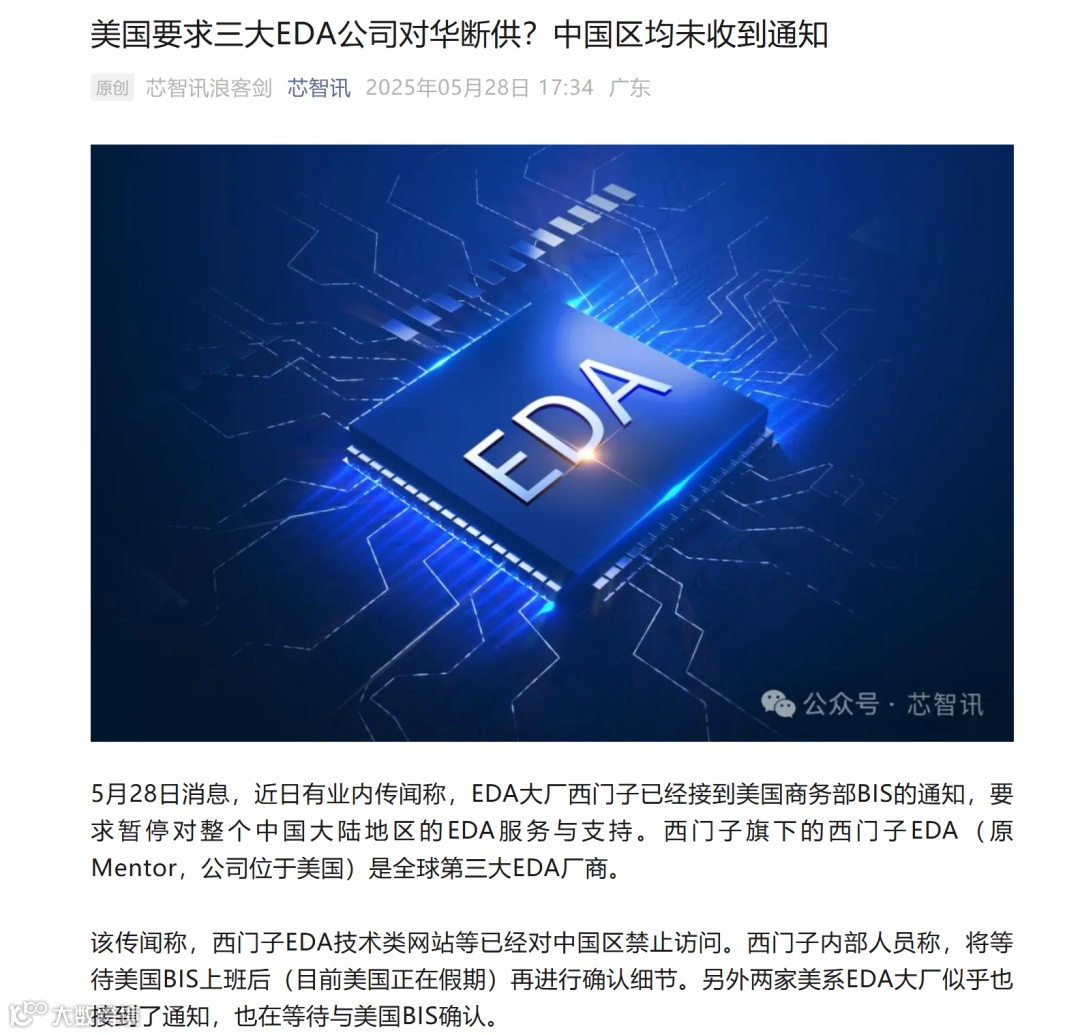 西门子内部人员称,将等待美国BIS上班后(目前美国正在假期)再进行确认细节。另外两家美系EDA大厂似乎也接到了通知,也在等待与美国BIS确认。