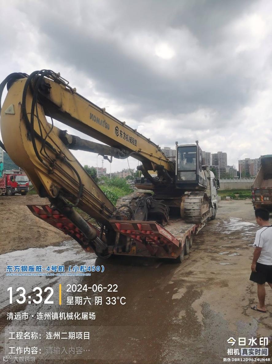 清远连州二期项目,下午13点,雨天。东方4号机机长—林家平,正指挥拖挂车转运桩机到新的工作面。