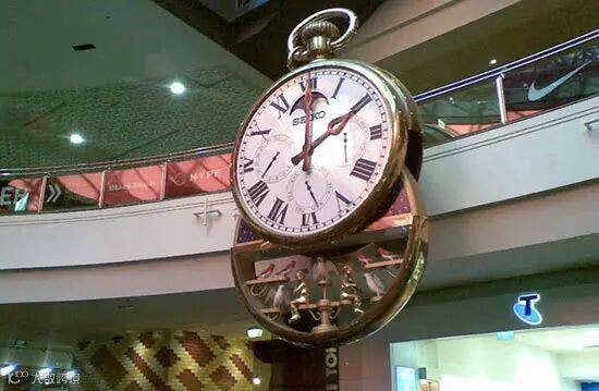 除了圆锥玻璃屋顶外,商场的另一项特色,就是拥有一座重达2000公斤的全世界最大吊钟,每当整点的时候,会从吊钟里面垂下美丽的坠饰,上面有小孩和鹦鹉,并演奏一首澳洲民歌,历时4分钟,成为吸引游客驻足的名片。