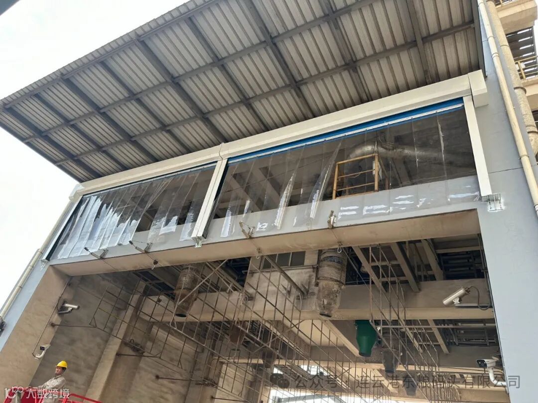 同时针对装车楼通道风大,粉尘扩散问题,科技之家积极推进具有起升功能的防尘卷帘,并先行在2#汽车装车楼先行先试,两年来取得了良好的抑尘效果,并经过公司安环、技术、生产部门验收,一致同意在3#装车楼推广使用。针对3#装车楼跨度大、装火车安全生命线设施交叉等困难,科技之家技术人员完成方案设计,利用8月份生产间隙,牺牲周末休息