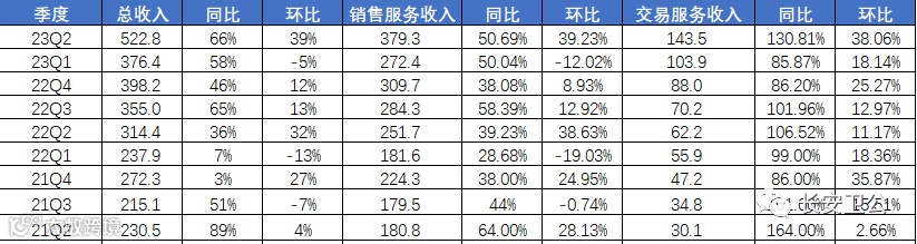 该季度总收入为人民币 522.807 亿元( 172.098亿美元),较 2022 年同季度的人民币 314.396 亿元增长 66%。