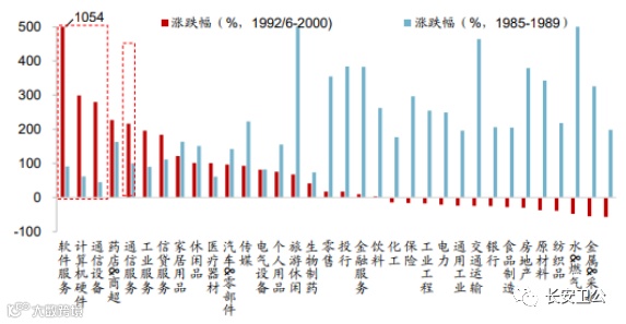 1992年6月,到2000年,日本股市跌幅超60%,16个行业暴跌了整整8年,跌的比较多的行业主要集中在