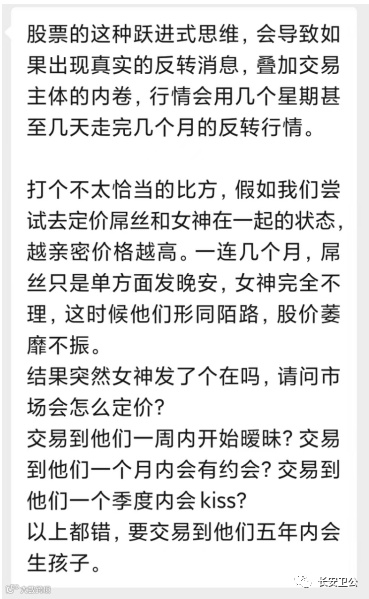 大格局哥说:“现在a股已经卷到女神发一个”在吗?”,市场就能交易到生小孩的程度,关键还有人能提前命令女神发消息。”
