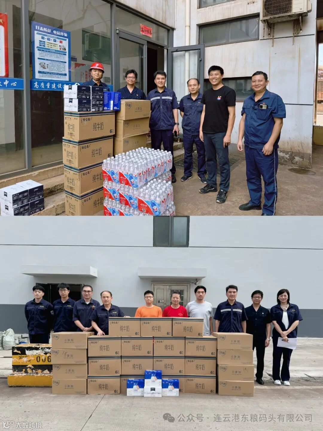 在吨袋车间、筒仓和码头等作业现场,公司领导端起整箱牛奶和满满的关心,代表公司向辛勤工作的职工们送去夏日