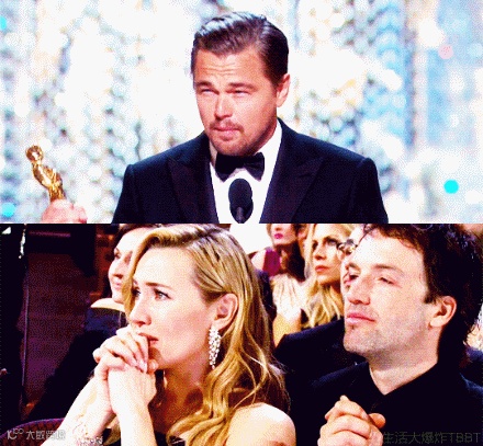 小李发表获奖感言,凯特温斯莱特目不转睛的看着(这就是真爱的眼神),你都谈了那么多模特了,也是时候该迎娶一下凯特了吧…………