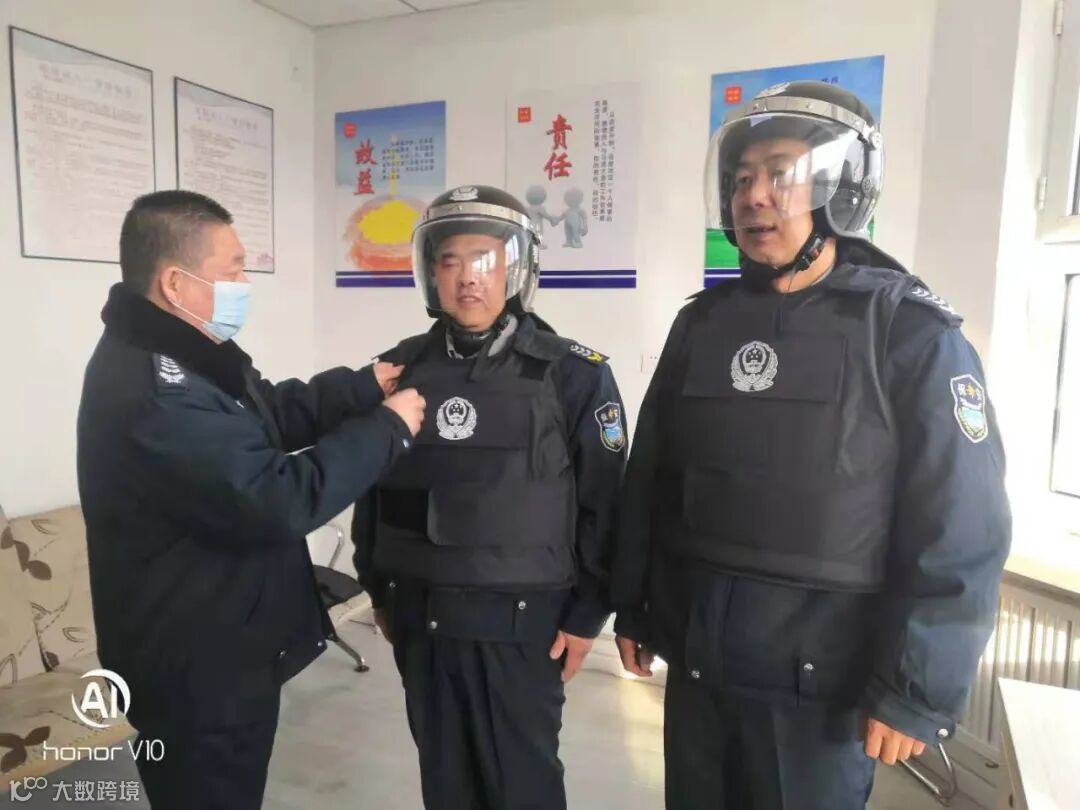 图为安保人员学习正确使用警具