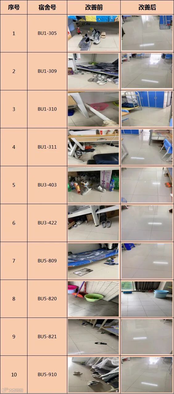 评比活动不仅是对优秀宿舍的表彰,也是对需要进一步提升的宿舍的激励。以下宿舍需要进一步改善: