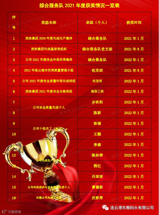 倏忽之间,我们又迎来了公司年度表彰,这一年闪耀在时光画廊里的辛勤汗水,给码头带来了力量和前进的动力,也照亮了综合服务队2022年的奋斗方向。