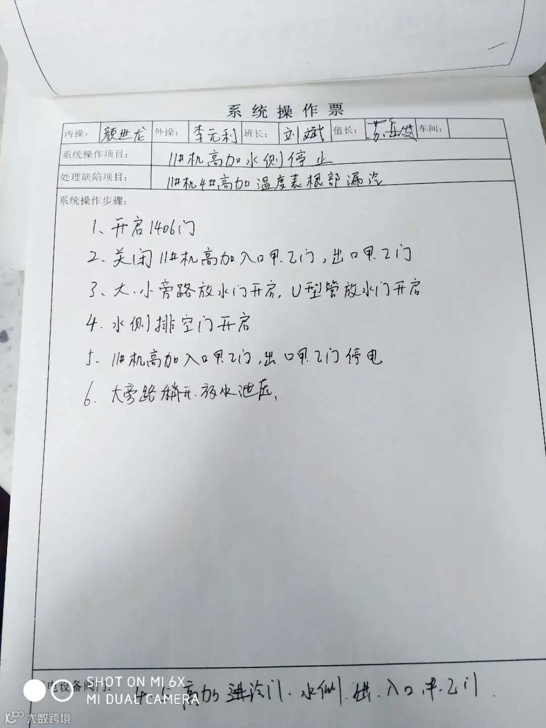 “自己写上一遍,细节想得更到位,操作起来思路更加清晰。”7月12日17时17分,热电厂汽机车间岗位员工孙少帅在投运11号机1.27兆帕抽汽系统操作前,将手写操作票认真写好后上传到汽机车间微信工作群中,经车间管理人员确认无误后,才开始执行具体操作步骤。