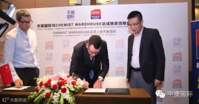 澳洲最大连锁药房Chemist Warehouse与中国公司阿里巴巴(Alibaba)于22日晚在北京签署独家战略协议,将商品通过网络直接销售给中国顾客。当时正在访华的维州州长Daniel Andrews表示,十分高兴能够见证这次意义重大的签约仪式。