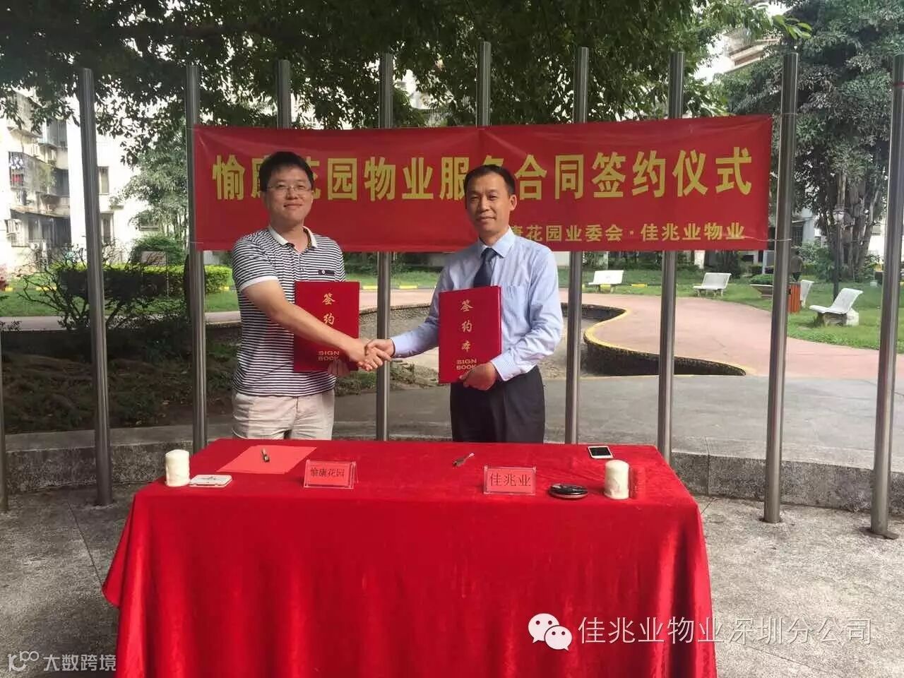 依据佳兆业物业管理集团战略部署,2016年为拓展年,各物业分公司全面开展项目拓展工作,捷报频传。近日,佳兆业物业深圳分公司也传来喜讯。2016年10月30日下午,在深圳市南山区愉康花园一期广场,佳兆业物业与愉康花园业委会正式签订物业服务合同。愉康花园上百名业主一同见证了这一激动人心的时刻。